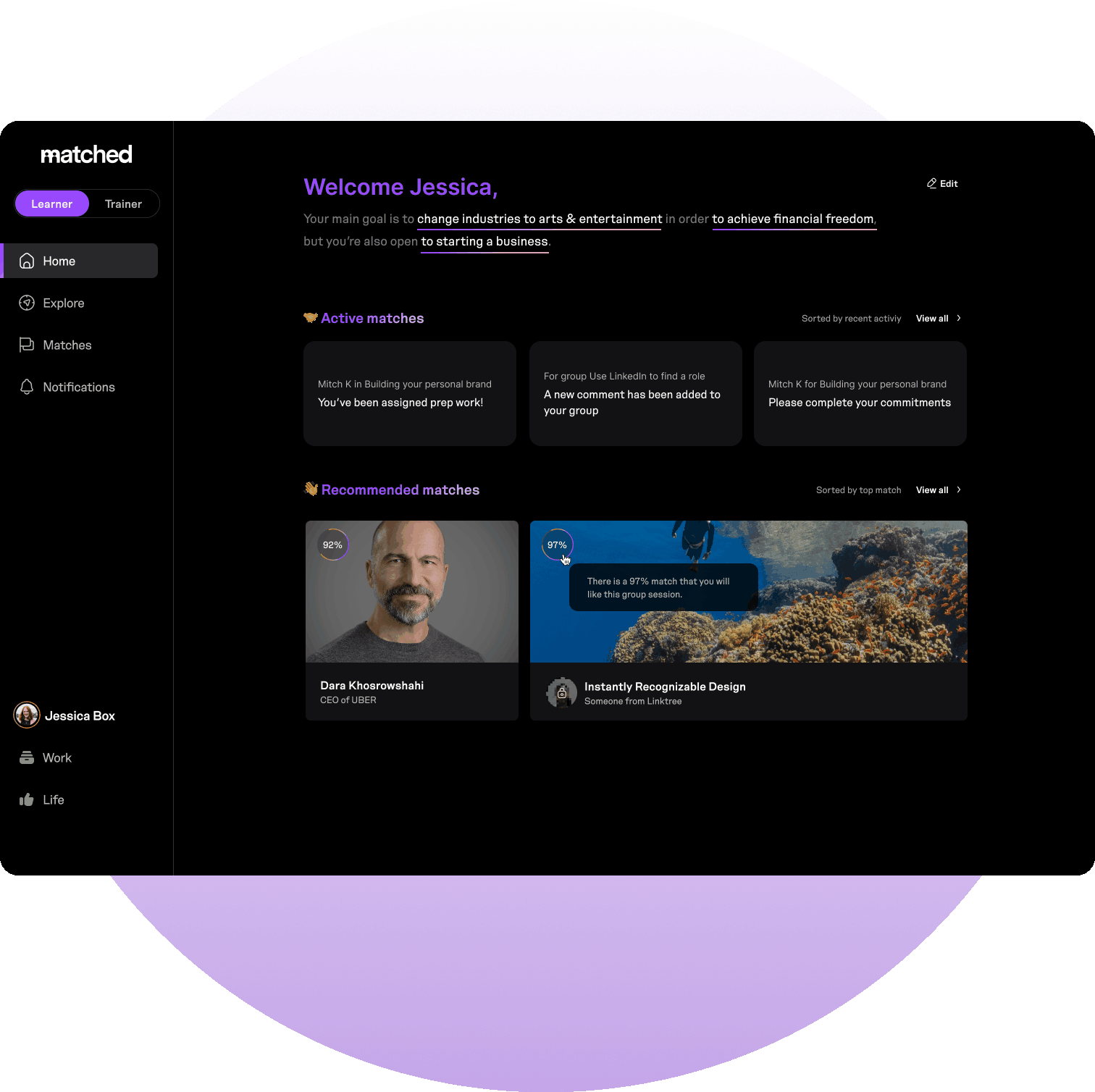 Get Matched by joining group and 1:1 sessions to access the advice you need.